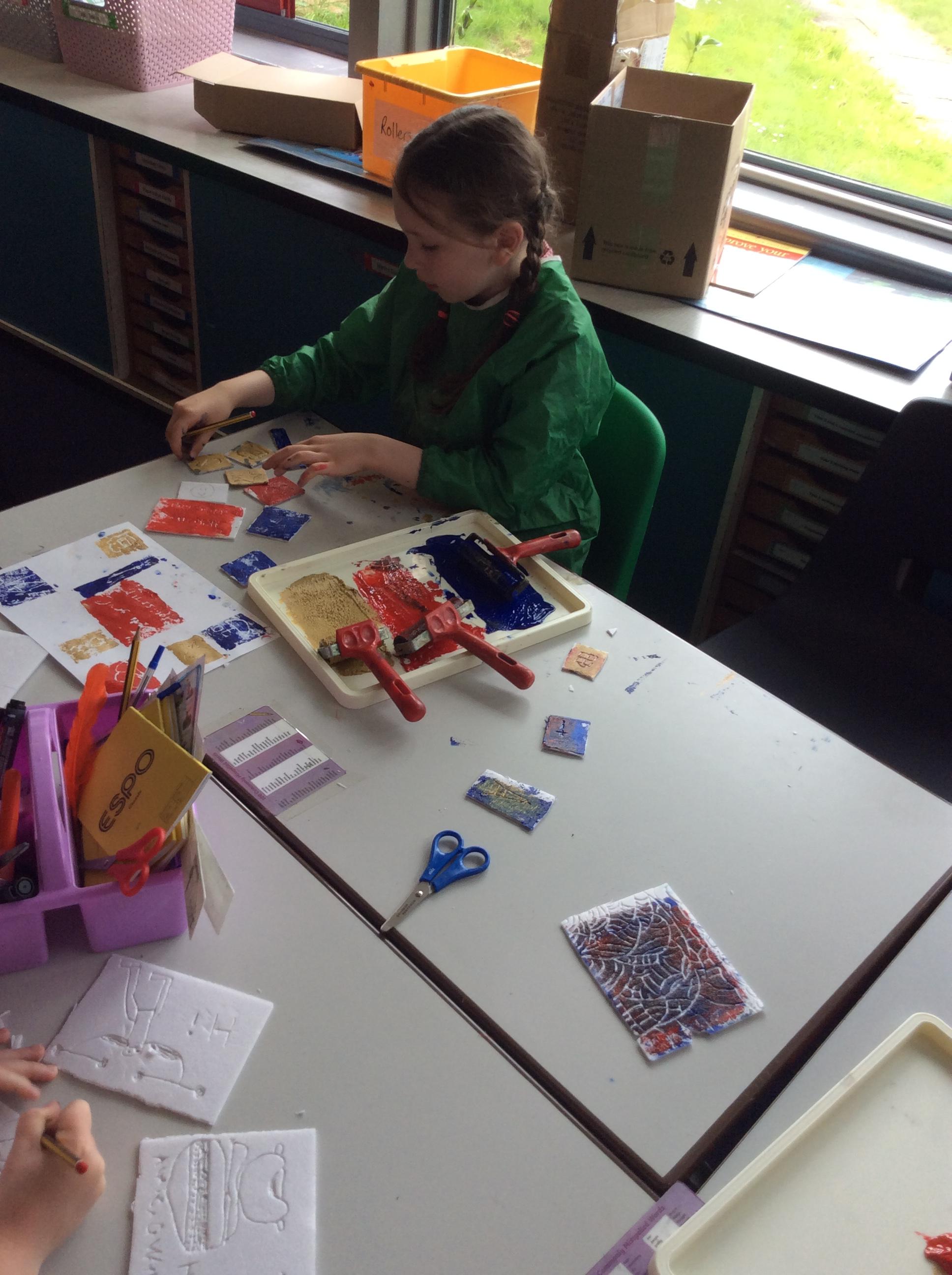 This term our focus was printing. We spent time looking at the artist Zandra Rhodes and discussed the colours and patterns she used within her work. We spent some time practicing our printing skills using polystyrene and creating our patterns in this, then rolling paint to create our print. Then we moved onto using Lino. We practiced the skill of carving patterns into Lino, as this is a very tricky skill! Then we moved onto carving our Zandra Rhodes inspired pattern into the Lino. We then chose our colours and printed using our Lino tiles.