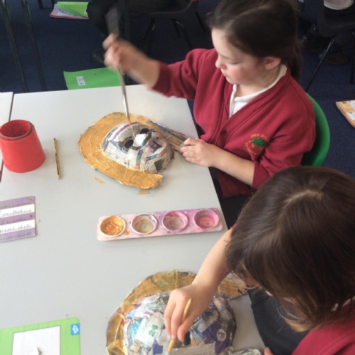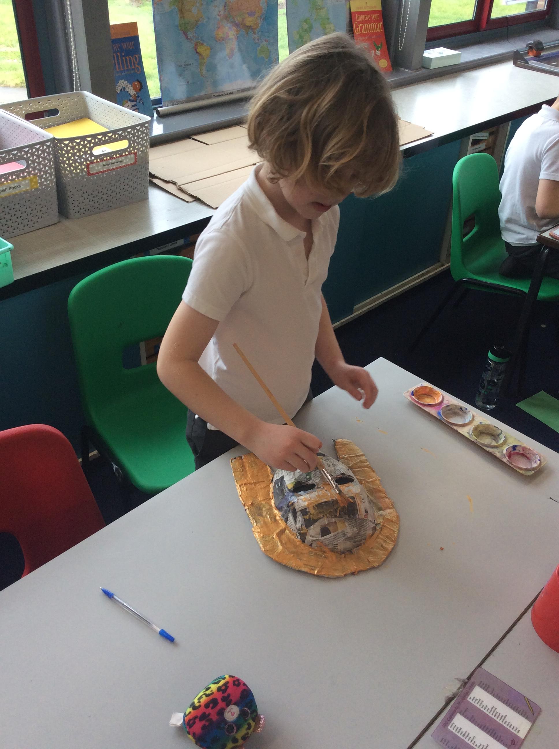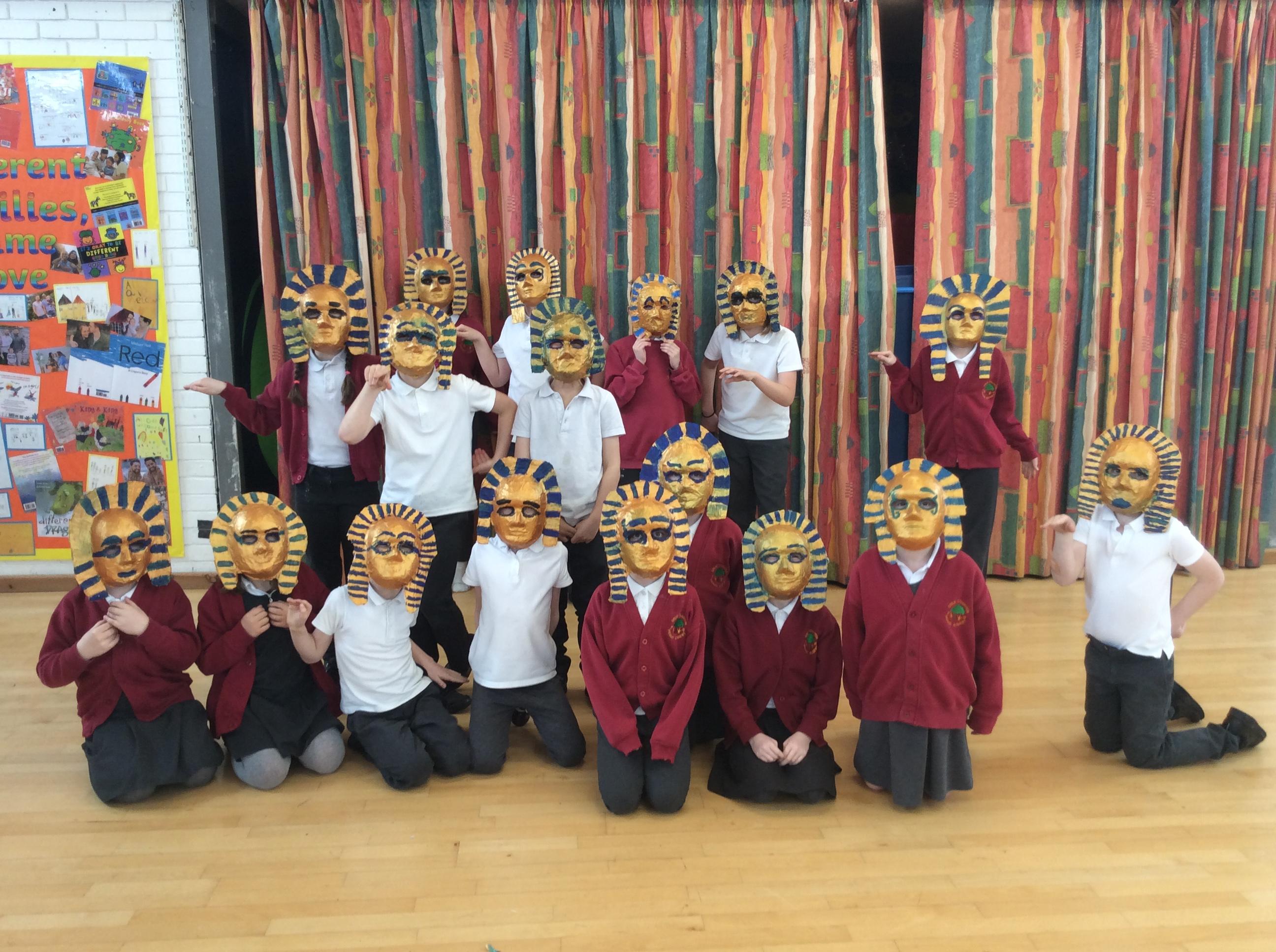 This half term we have been looking at form in art and became inspired to create their own Death Masks similar to Tutankhamun. The children then got to wear their Death Masks on our Egyptian Topic Day.