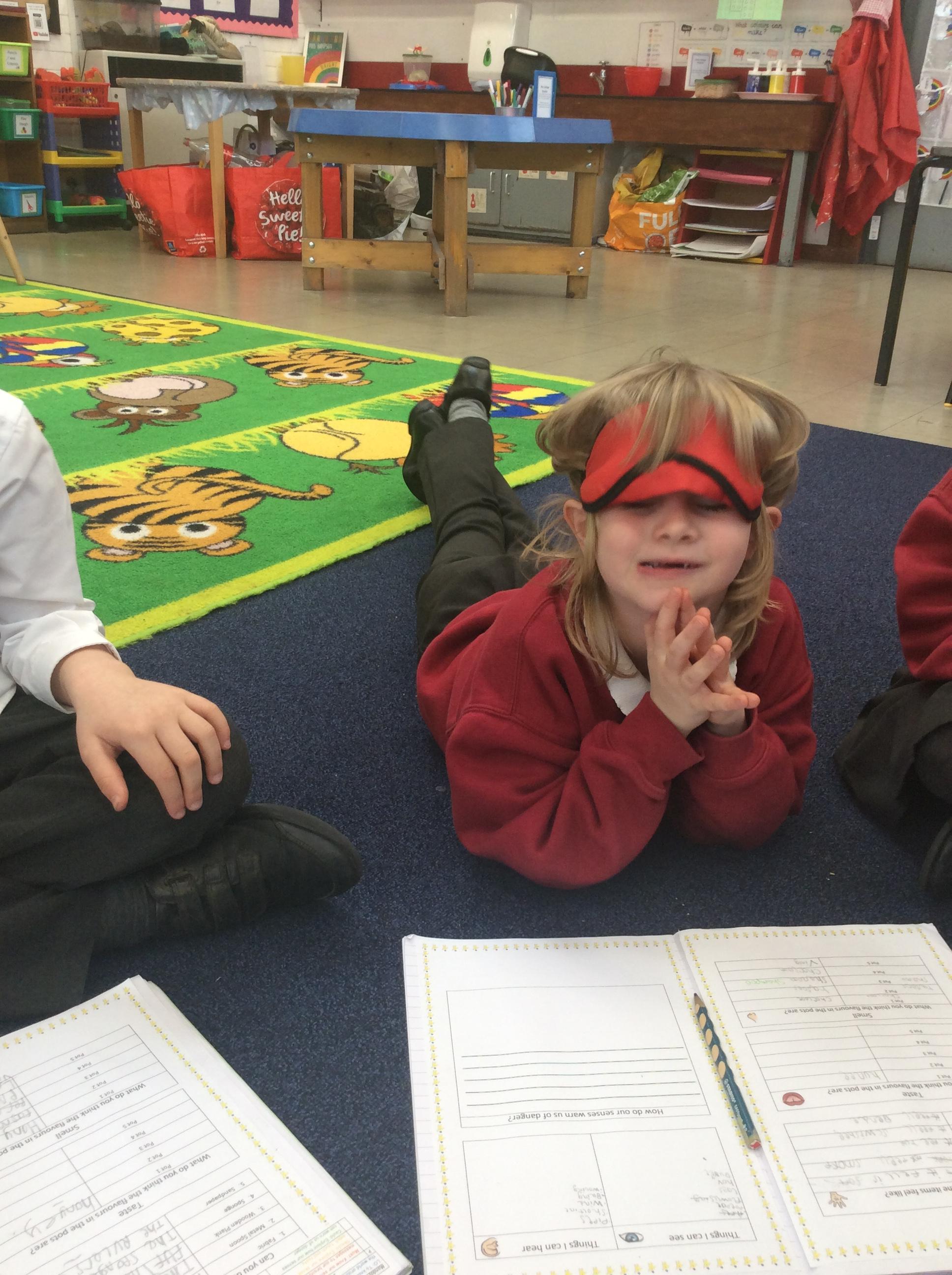 In Science we completed a senses experiment to consolidate our knowledge on this. The children took part in a carousel of activities which were based around each sense including some blindfolded tasting and smelling!